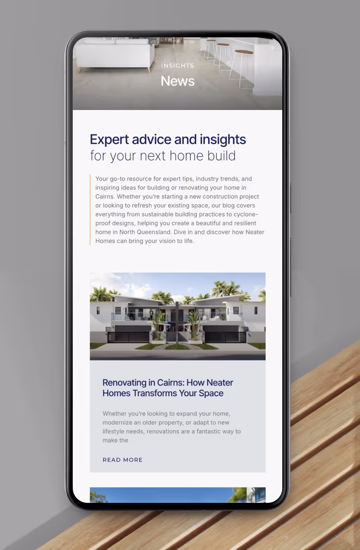 Crafting a premium online presence for Neater Homes, a locally owned construction company celebrated for building modern, high-quality homes in Far North Queensland.