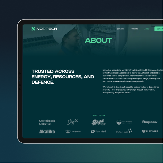 A complete rebrand and website redesign positioning Nortech as a professional, future-focused tier-one construction company.