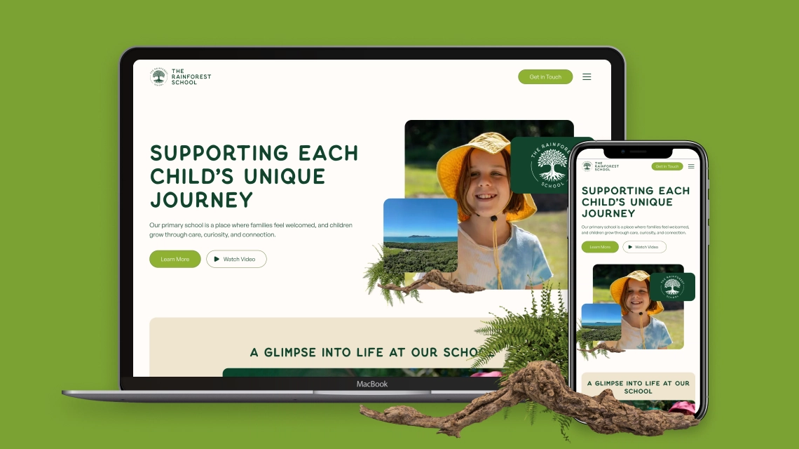 The Rainforest School has long been known for its holistic, community-driven approach to education. They sought out Bang Media with a clear goal to modernise their identity while staying true to their core values of care, growth, and connection.